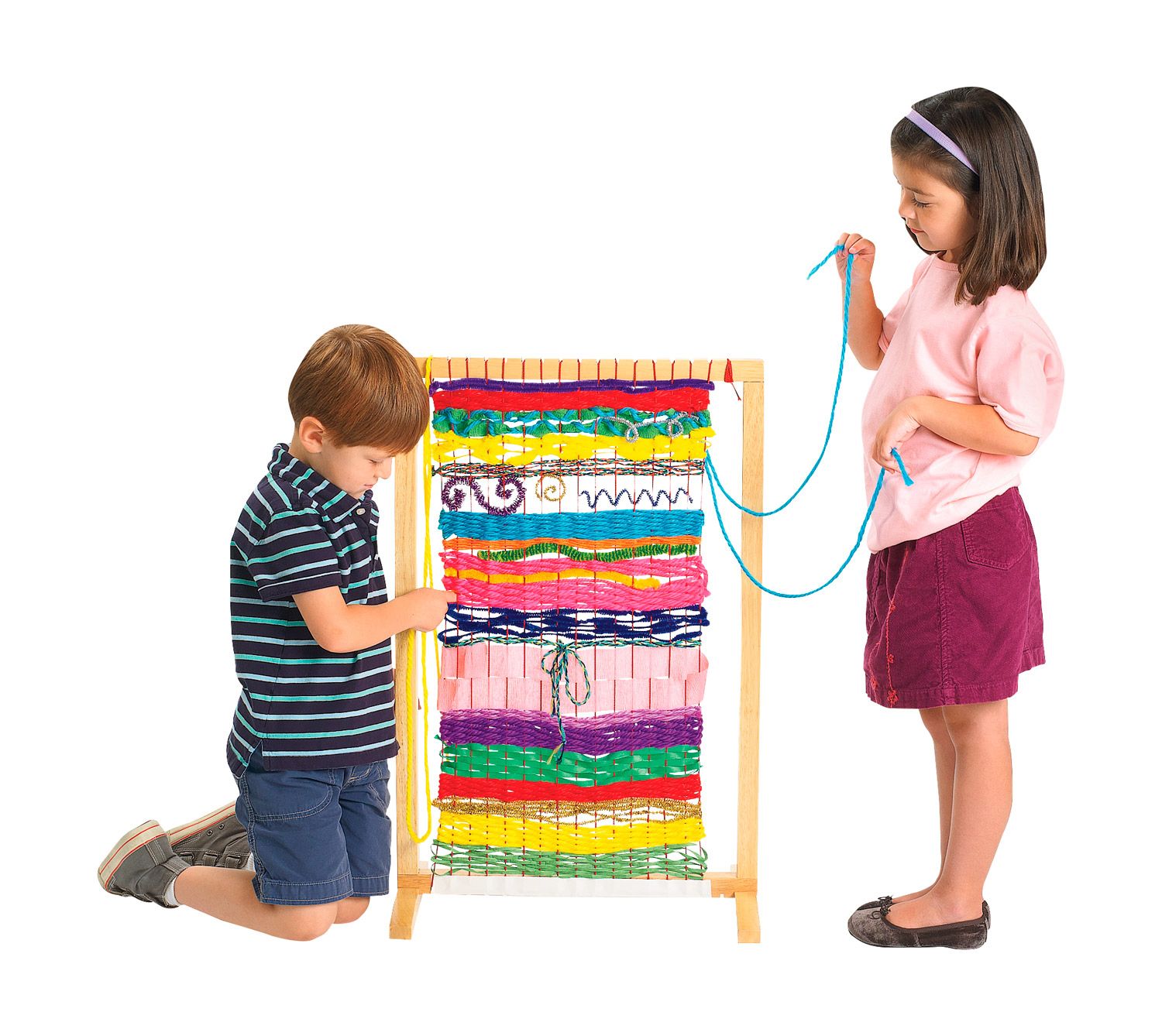 Големият дървен тъкачен стан предлага на децата възможност да се потопят в древното изкуство на тъкането по един лесен и увлекателен начин. Здравата дървена конструкция е подходяща за домашна и учебна среда, като позволява на едно или две деца едновременно да създават свои уникални тъкани проекти. Работата с различни материали – прежда, плат, креп хартия или други – развива фината моторика, концентрацията, креативността и математическите умения, докато децата се забавляват в напълно безопасна среда.