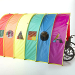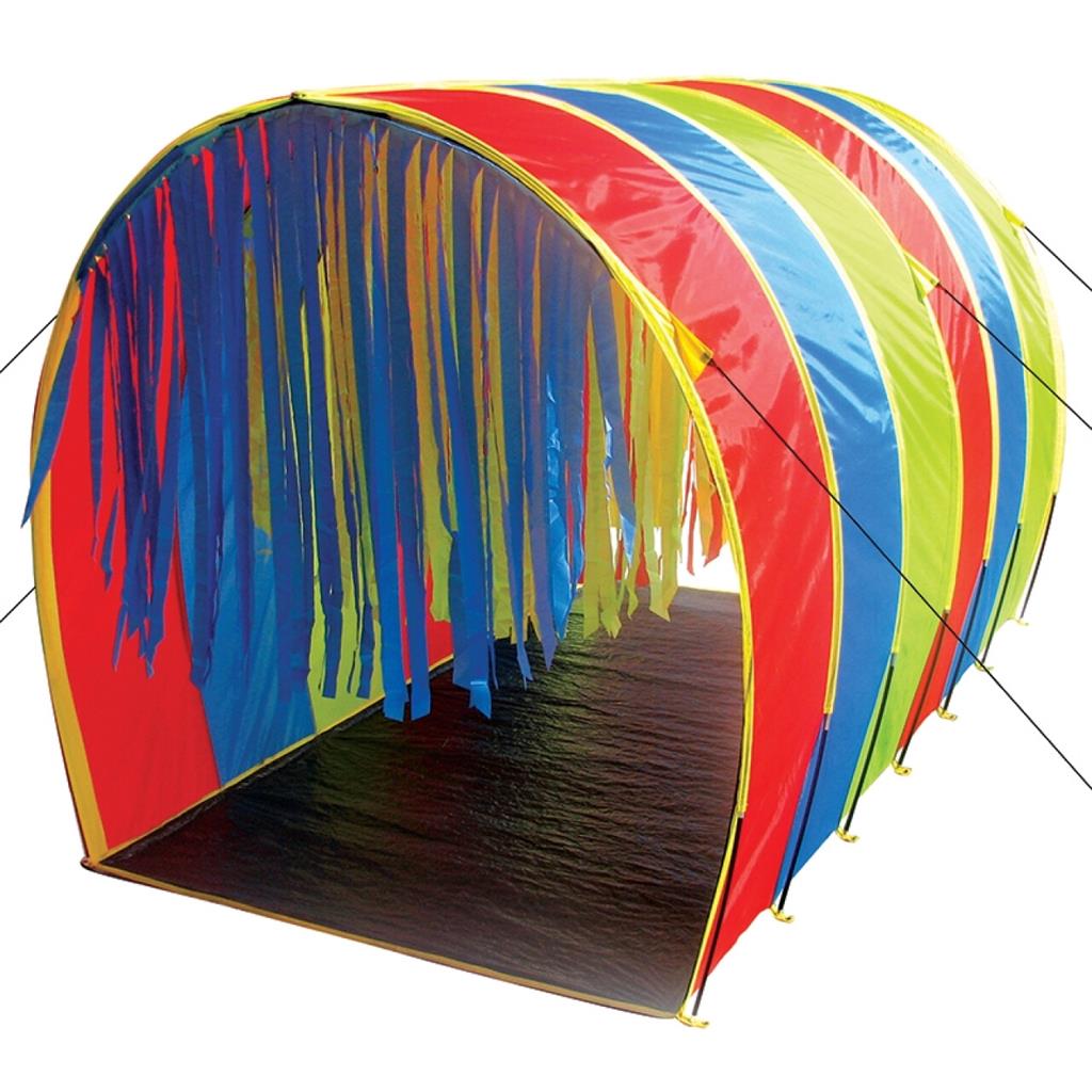 Тунелът е изработен в ярки цветове на дъгата, с прозорци във формата на различни геометрични фигури и вход с меки висящи ресни, които създават усещане за леко докосване и тактилна стимулация. Подходящ за използване с инвалидна количка, с широко и лесно достъпно входно пространство, което насърчава самостоятелност и участие.