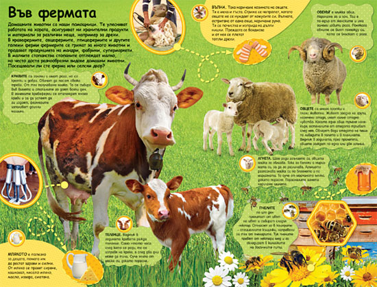 Богата и достъпно поднесена информация, великолепни фотографии и повече от 50 реалистични звука превръщат книгата в истинска енциклопедия за домашните животни и създават жива представа за живота във фермата.