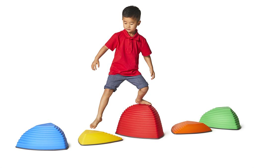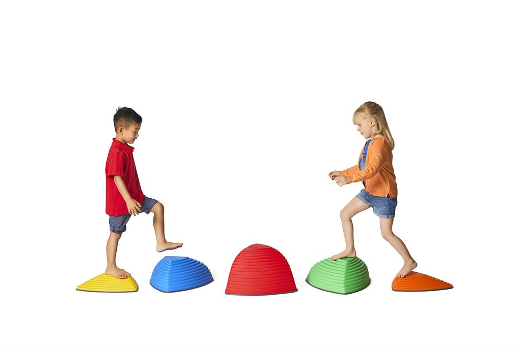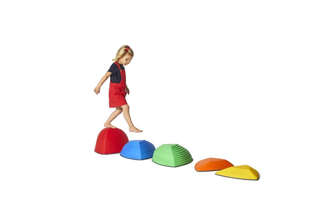 Комплект от 5 бр. стъпки с различна височина и цветове. Разработени са с цел подобряване на координацията и баланса на тялото и за забавление. Може да подреждате хълмовете по различни начини, за да създавате по-предизвикателни пътеки за деца. Те трябва да извървят маршрута, като стъпват само върху хълмовете, без да докосват пода. Всеки хълм има гумен ръб в основата, който предотвратява подхлъзването му, а също така предпазва пода от нараняване.