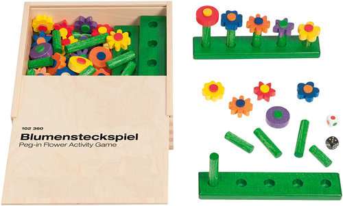 Предложения за игра: Играта е подходяща за широк кръг дейности – съотнасяне и сортиране по цветове, броене и други игри като домино или мемори. Играчите трябва да сортират стеблата по дължина, а цветята – по форма и цвят. Може да усложните играта за по-големите деца, като включите и зарче с цветове или цифри. Наблюдавайте как цветята растат и градината се оформя с всяко хвърляне на зара.