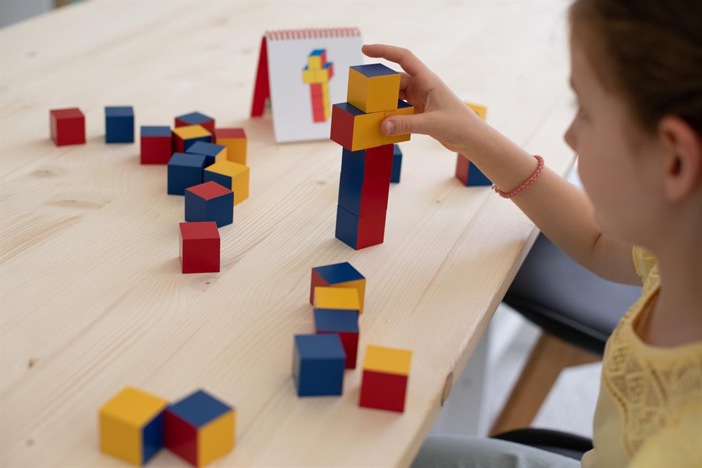 Универсални цветни кубчета – Никитин №2. Те са забавен начин за упражняване на пространственото мислене (от 2 към 3 измерения), комбинативните способности и логическото мислене. Кубчетата могат да се комбинират в безкрайно разнообразие от форми.