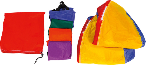 Съдържание / материал: 6 парашута за игра в 6 цвята, всеки с 6 ръкохватки, 2 въздушни топки, изработени от 100% найлон