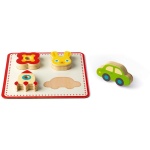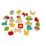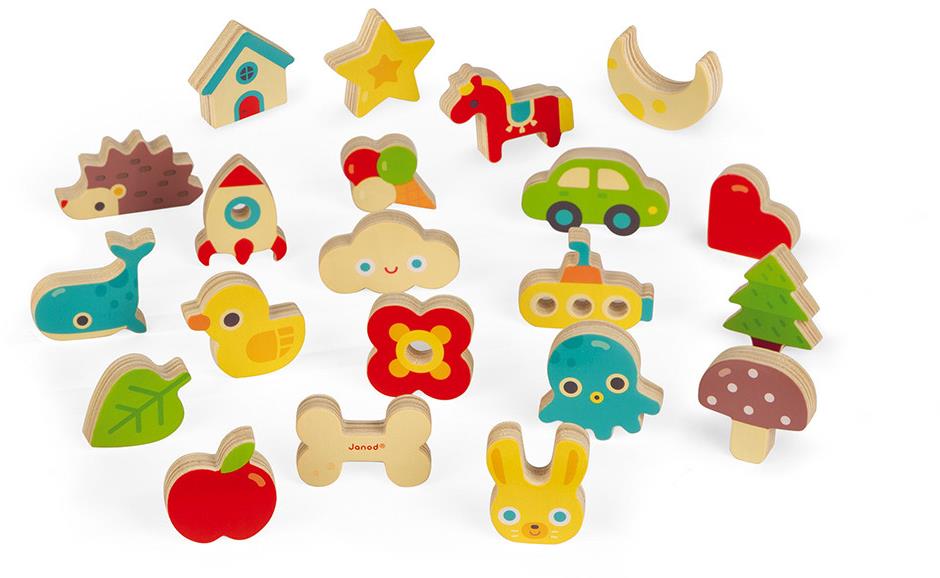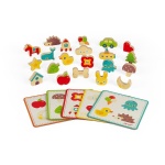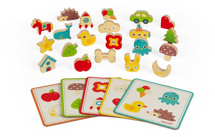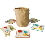 Тази дървена игра за тактилно разпознаване ще помогне на деца да развият сетивата си и най-вече усещането за допир. Целта е проста: всеки играч избира карта за игра. След това, като се редуват, играчите бъркат в торбата с дървените елементи и търсят такъв, който за отговаря на някоя от картинките върху тяхната карта. Но внимавайте за елемента „капан“! Който вземе кокала, трябва да върне всички елементи, които вече е спечелил, обратно в торбата. Първият играч, който попълни своята карта, печели играта!