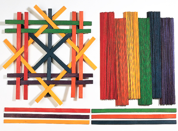 Съдържание/ материали / размери: 120 ленти фурнир в 6 цвята, 25х1х0,1 см