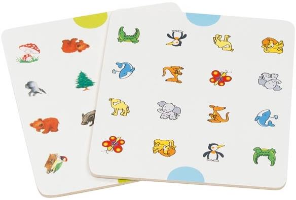 Класическа мемори игра с 6 шаблона с мотиви животни и символи.