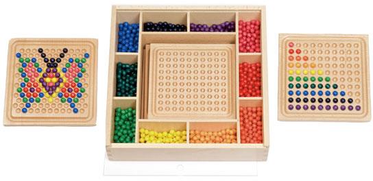 Сфери на въздействие: Тренира фината моторика, координацията око-ръка, концентрацията, търпението, разпознаването и сортирането на цветове, пространственото възприятие. Стимулира творческото мислене.