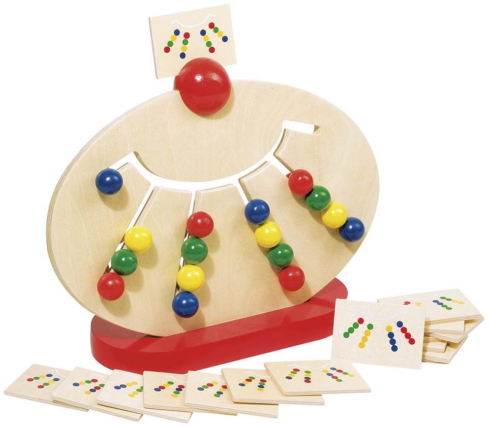 Дървено табло с улеи и цветни дървени топчета, които се движат в тях + 16 шаблона с модели.