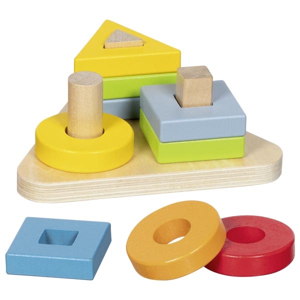 Играчка сортер с цветове и фигури е компактна и интуитивна образователна игра, подходяща за най-малките деца. Елементите се подреждат върху дървени колчета, като всяка форма отговаря на конкретен профил. Това улеснява разпознаването на форми и цветове и превръща играта в естествено въведение в сортирането и подреждането.