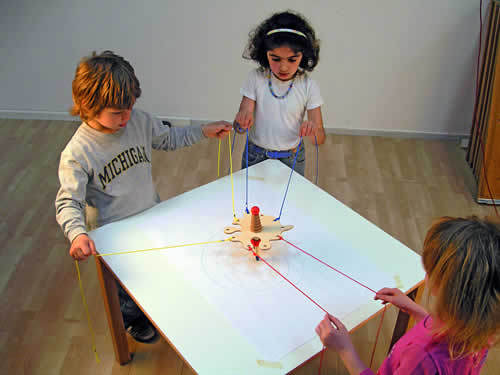 Инструмент за групово рисуване. Различни средства за писане могат да се използват – пастели, моливи, флумастери, тебешири. Рисуването става чрез дърпане на завързаните за уреда връвчици. Децата могат да го използват дори на двора. Освен свободни творчески интерпретации, те могат да изпълняват и различни задачи, като например да нарисуват и проследяват контурите на полегнала осмица, да пишат цифри, букви, думи, да нарисуват предмет и т.н.
