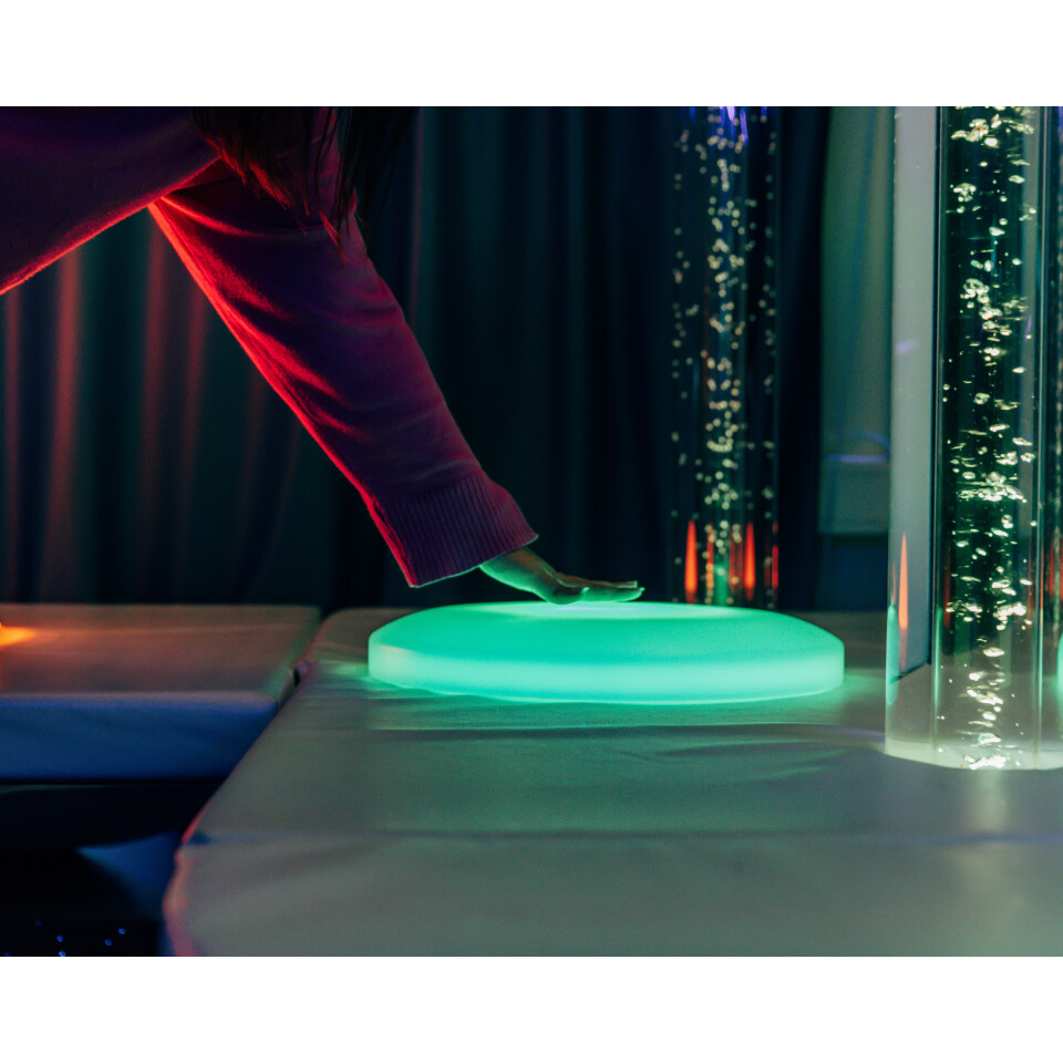 Този интерактивен LED панел със светлинни ефекти е истинско съкровище за всяко сензорно пространство. При допир или натиск той реагира с преливащи цветове, които събуждат интерес и канят децата към движение, изследване и игра. Панелът е особено подходящ за деца със сензорни затруднения, тъй като съчетава тактилна стимулация с визуална обратна връзка.