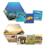 1. Разпределяне на карти – Играта включва 5 шестоъгълни карти с местообитания и 30 карти с животни.