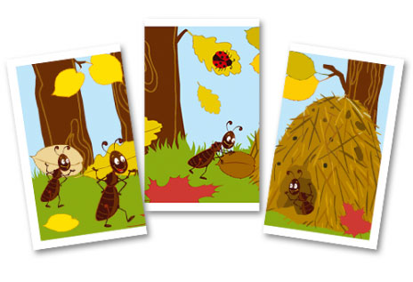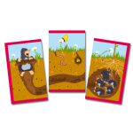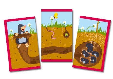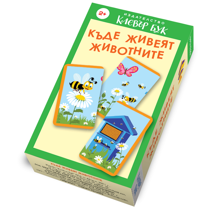 Занимателна игра с карти на тема „Животните и техните местообитания“. Представени са 10 животни, всяко с по три карти под формата на пъзел, показващ къде живеят.