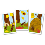 Съдържание: 15 карти от специален, дебел картон, и 30 картинки, от които може да направите 10 пъзела