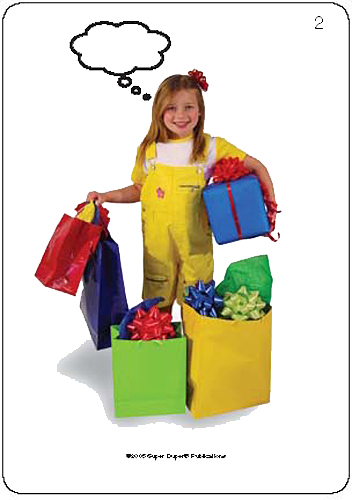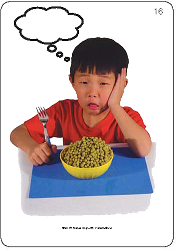 Хората и животните от картите имат нарисувани мисловни балончета над главите си. Децата трябва да „разчетат“ снимките и да предположат за какво си мисли всеки от персонажите. Картите могат да се използват успешно и в логопедична терапия, като на децата се предложи да озаглавяват различните ситуации от картите, да съставят устни или писмени диалози между персонажи от различни карти и други забавни игри.