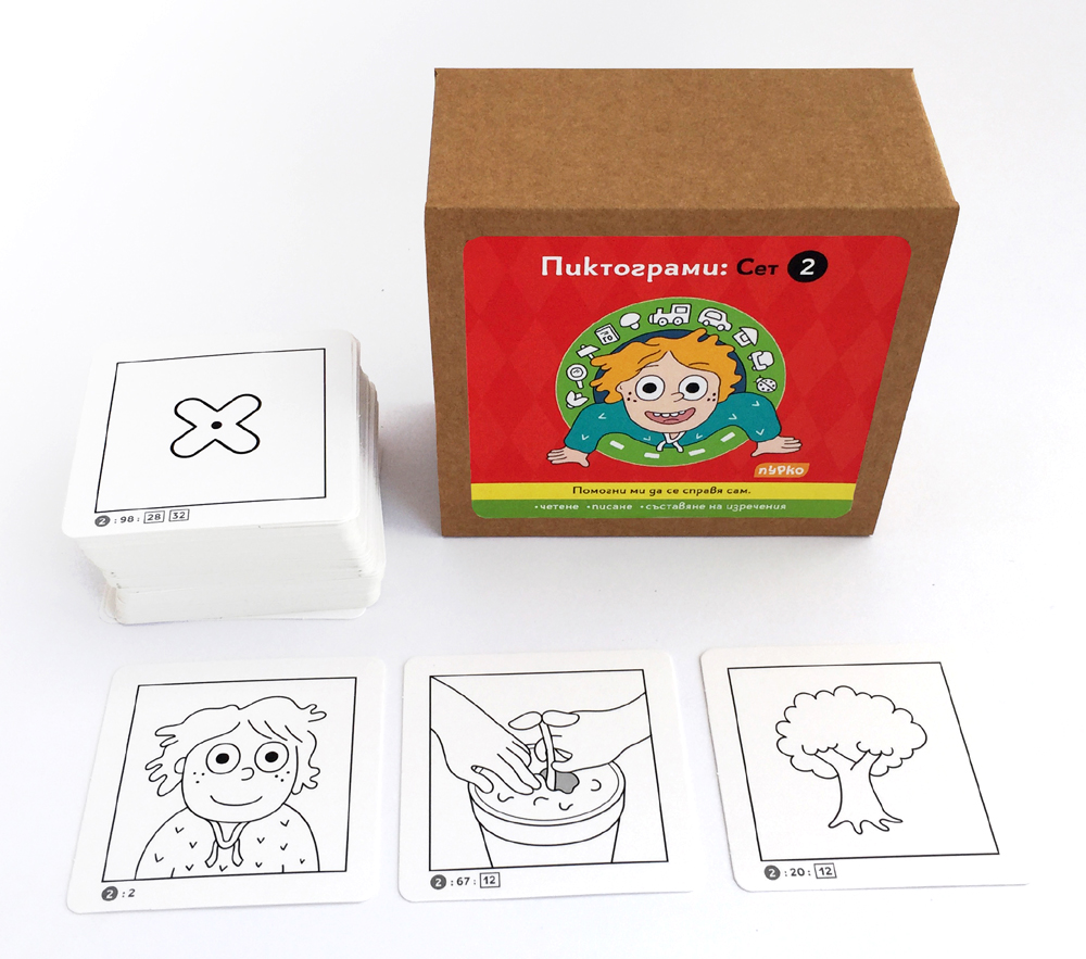 Картите използват логиката (за всяка дума пиктограма) от книгата “Светът на Гого”.