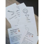Авторски карти за артикулационна гимнастика със солети в рими. Всяко упражнение е под формата на кратка, римувана инструкция, която се изпълнява със солета, под формата на игра.