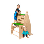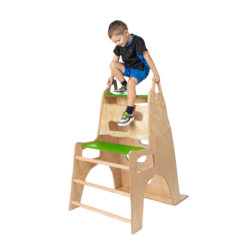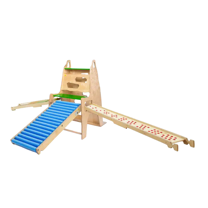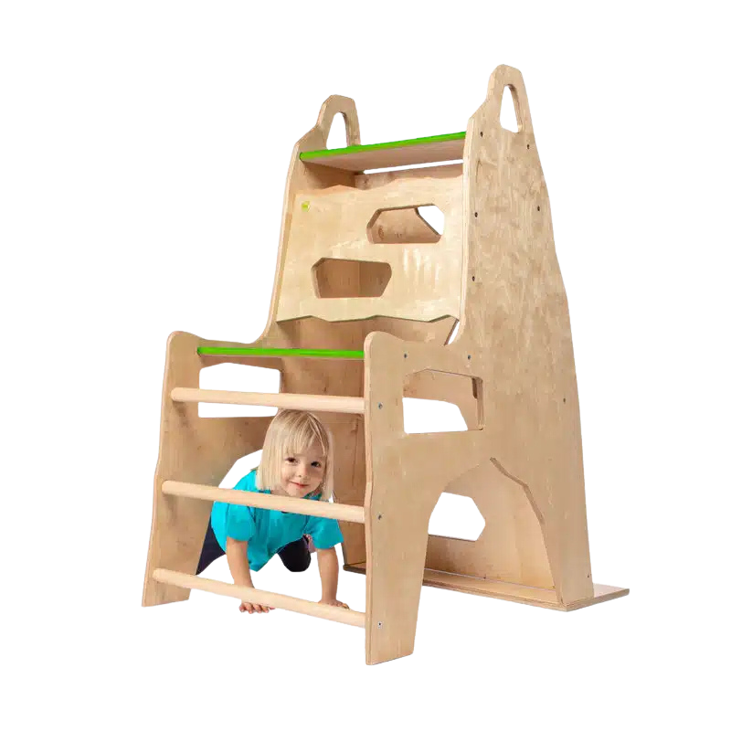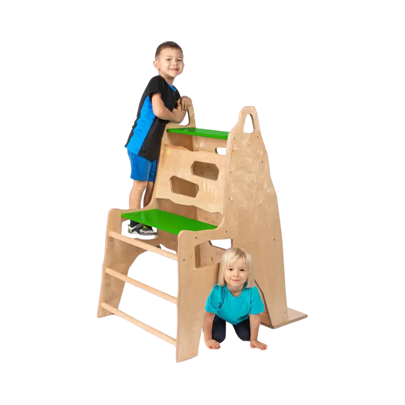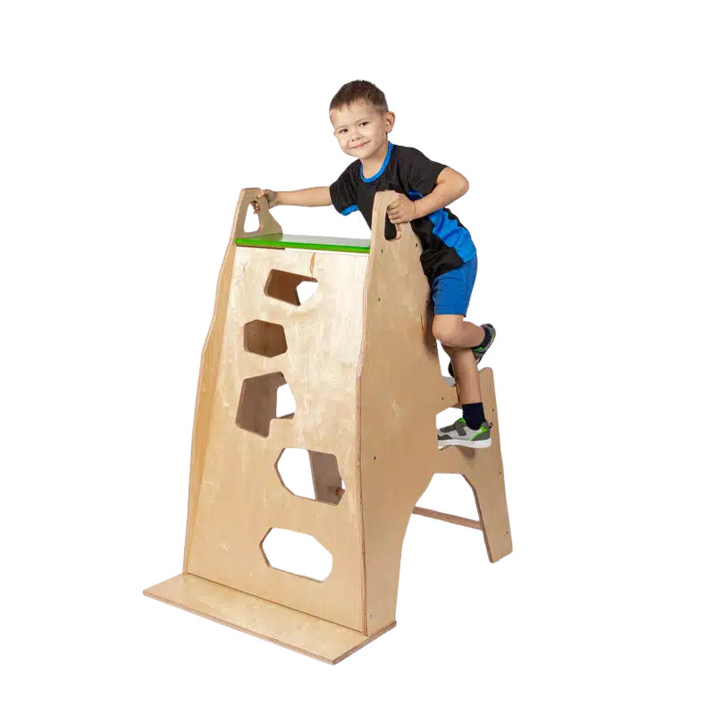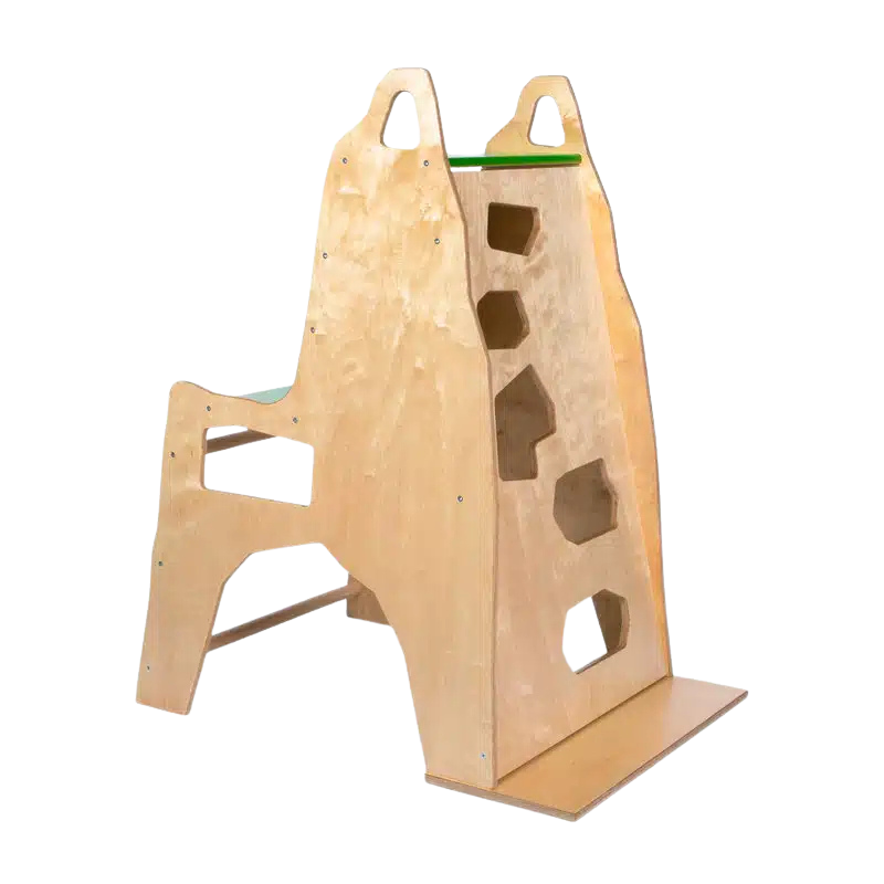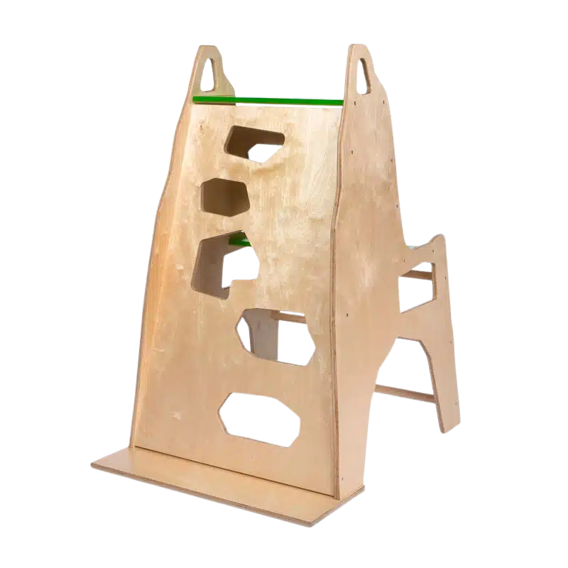 Изработена от висококачествена букова дървесина и шперплат, катерушка Планина е здрава, стабилна и устойчива на интензивна ежедневна употреба в детски градини, занимални, сензорни зали или у дома.