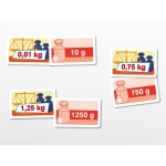 Децата се упражняват да преобразуват килограми в грамове и обратното, сравняват резултатите и се запознават с десетичната запетая (например в тегло като 0,5 кг или 1,2 кг). По този начин затвърждават знанието, че 1 килограм съдържа 1000 грама.
