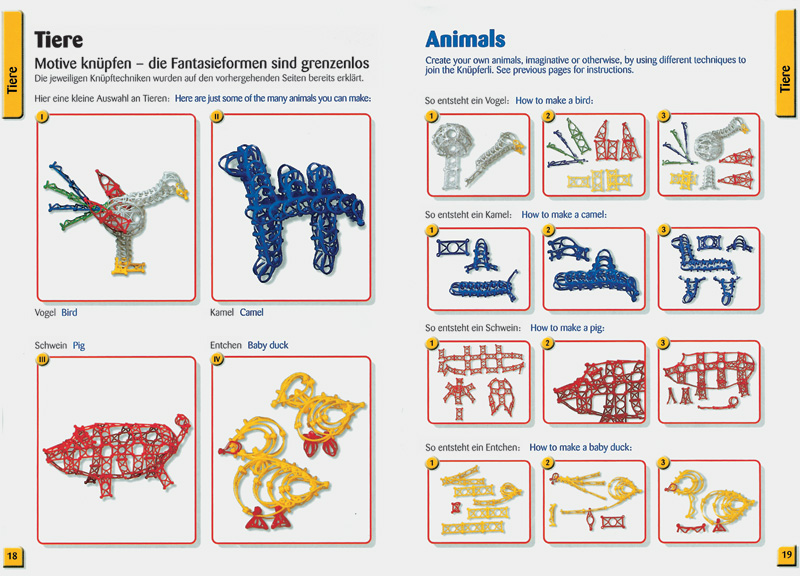 Пластмасовите елементи Кнюпферли са изключително гъвкави и здрави. С малко упражнения и известна доза сръчност ще може да направите с тях всякакви форми. Колкото повече играете с Кнюпферли толкова повече ще се вдъхновявате. Въображението не познава граници! В ръководството ще откриете множество творчески идеи и готови модели за сглобяване.