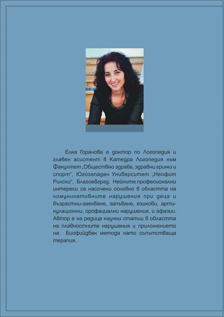 Монографичният труд „Комплексна логопедична и функционална терапия на заекване при възрастни лица“ е изграден основно върху диагностичните резултати, получени от прилагането на „3D Модел за комплексно изследване на видове и подвидове плавностни нарушения на речта“, който беше разработен в рамките на докторската дисертация на автора. Резултатите от 3D модела, на първо място, доказаха категорично необходимостта от групиране на заекващите в подгрупи по признака „Вариабилност на логопедични и функционални параметри“, т.е. че съществуват дискретни динамични зависимости, които са характерни за различните подвидове заекване. Разглеждайки феномена заекване като дисбаланс между различни функционални системи, които участват в реализирането на говорното поведение: дишане, нервна регулация, волеви моторен контрол, мониторинг на изпълнение на моторни програми, емоционална реактивност, фонация, артикулация (Горанова, 2016), бе поставена задачата да се проучат възможните начини за устойчив пренос на усвоените умения на плавна реч от логопедичния кабинет в реална комуникативна среда. Запознаването с биологичната обратна връзка (БОВ, Биофийдбек) като научно основан метод, позволи приложението му при диагностиката и терапията на лица със заекване от различни възрастови групи. Чрез приложението на техники като мека гласова атака и/или удължена реч, и последваща комбинация с БОВ се постигат много по-бързо и по-лесно посочените терапевтични цели. Трансферът на новопридобитите умения от защитената клинична среда към реалните комуникативни ситуации се осъществява в пъти по-бързо и ефективно с прилагането на БОВ.