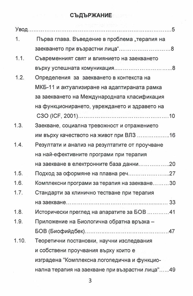 Целта на настоящия монографичен труд е да проучи научно доказани терапевтични техники и подходи и да предложи включването на иновативна софтуарна компютърна програма като подпомагаща технология – Биологична обратна връзка (БОВ) при терапия на възрастни лица със заекване.