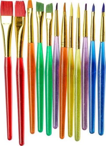 Комплект четки за рисуване на детайли Съдържание: 12 четки с прозрачни пластмасови дръжки, синтетичен косъм Размери: 14 – 15 cм, дължина на косъма 0,2 – 1,5 cм