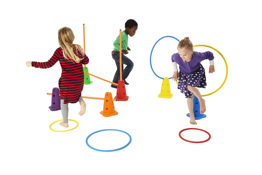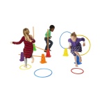 Многофункционални конуси, които може да се използват за различни дейности и игри. Отворите (Ø = 25 мм) позволяват използването на тояжки в комбинация с конусите. Обръчите Hula също могат да бъдат поставяни в горните процепи. Стилен дизайн в ярки цветове.