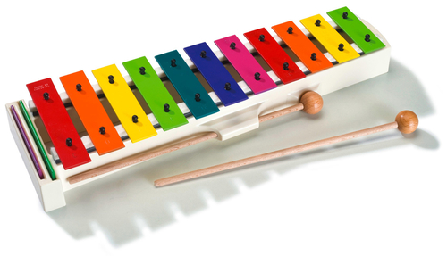 Ксилофон с цветно кодиране на нотите (съответстват на тръбите Бум-уакър, c3 – f4)