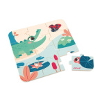 - Дървен пъзел „Крокодил“ – 12 части, които помагат на детето да пресъздаде сцена, разширяват речниковия му запас и развиват наблюдателността и логическото мислене.
