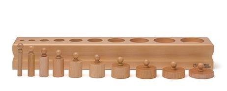 Кутия с дървени цилиндри. С намаляване на височината се увеличава диаметърът на цилиндрите