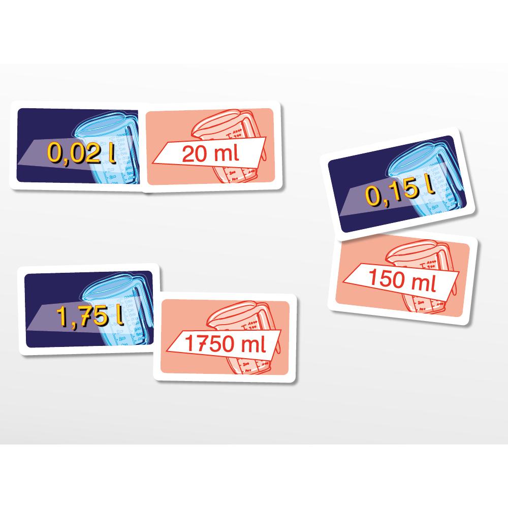 Децата се упражняват да преобразуват литри в милилитри и обратното, сравняват резултатите и се запознават с десетичната запетая (например в количества като 0,25 л и 1,5 л). По този начин затвърждават знанието, че 1 литър съдържа 1000 милилитра.