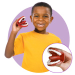 Гъвкав демонстрационен макет на уста. Челюстите и езикът са подвижни. Подходящ за логопедична работа при артикулационни и оралномоторни нарушения, както и дефицити при някои хранителни механизми.