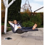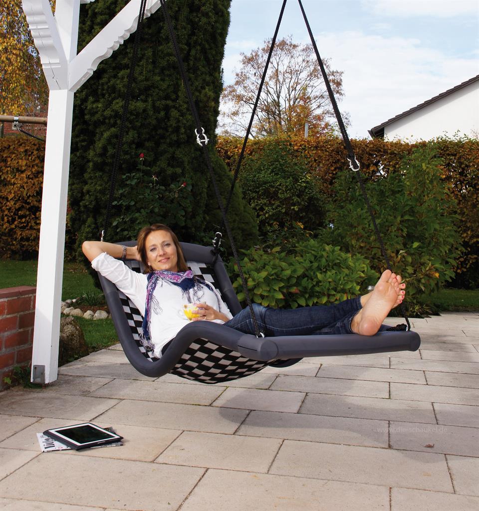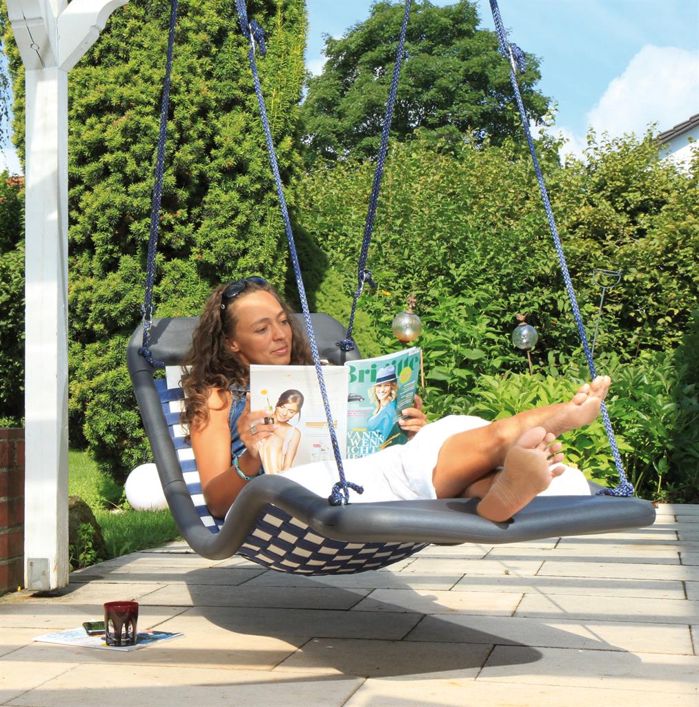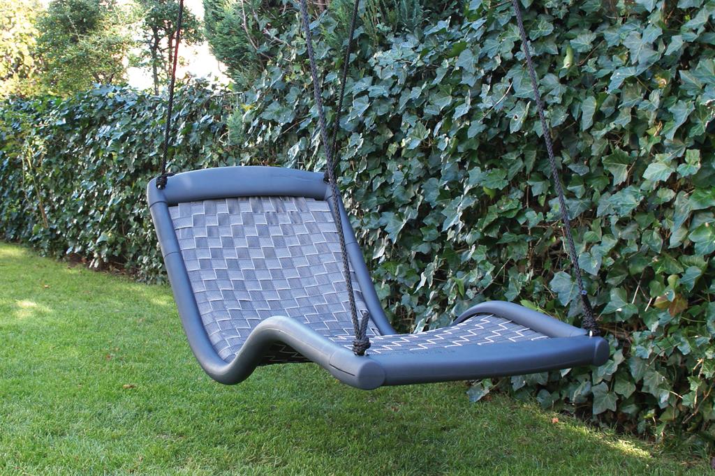 Наклонена люлка в стил кресло. Ъгълът на наклона може да се регулира с помощта на катарамите върху въжетата – от изправено седнало положение до полулегнало. Подходяща за деца и възрастни с височина до 185 см. Устойчива на атмосферни влияния. Може да се монтира навън и в закрити помещения.