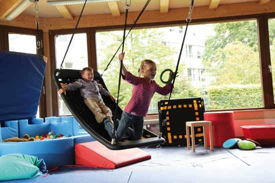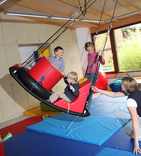 Терапевтичните люлки помагат за инициирането и ускоряването на процеса на учене. Те имат важна роля за стимулиране на сетивата и за развитие на възприятията. Извитата люлка TherapiePlus е ключово оборудване, използвано в сензорно-интегративната терапия. Когато пациентът и терапевтът се люлеят заедно, между тях се създава доверие, а то е в основата на по-нататъшни терапевтични успехи. Ергономичната форма осигурява чувство на сигурност. Едноцветното покритие на люлката може да бъде рамкирано с контрастна гранична лента. По този начин пациентите с нарушено зрение ще могат да се ориентират по-лесно и по-бързо в пространството. Обърната с дъното нагоре, люлката може да се използва за упражнения за разтягане и масаж.