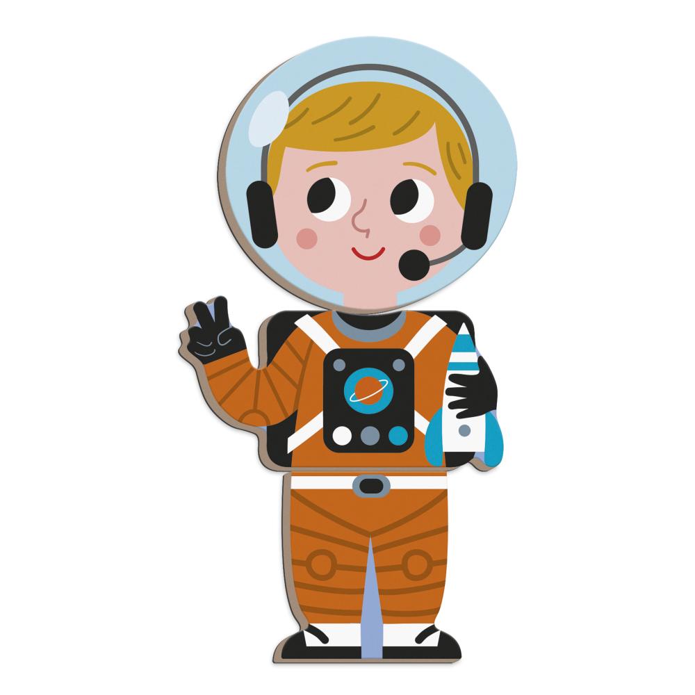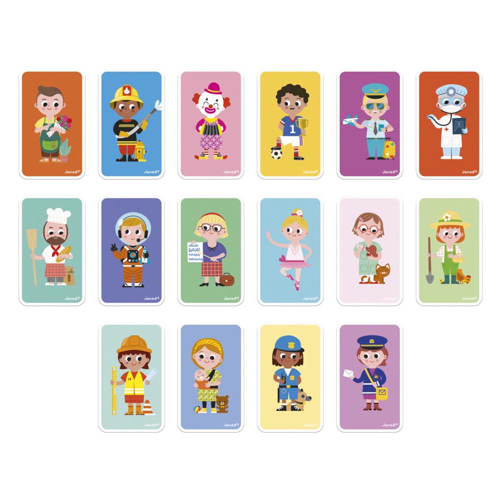 Детето избира една от 16-те карти с професии и използва магнитните плочки, за да пресъздаде изображението върху магнитната дъска. Освен това, може да смесва различни части, за да създаде свои забавни и нестандартни професии.