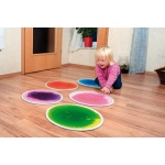 Комплект от 5 броя кръгли маслени гел плочи. При натиск цветната течност вътре се движи и смесва, като създава впечатляващи визуални ефекти. Плочите са изработени от висококачествени материали. Те са изключително здрави и имат непързалящо се покритие на задната страна. Върху тях може да се стъпва и върви.