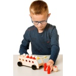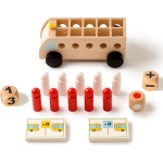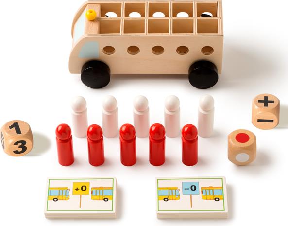 Забавна игра, с която децата се учат да смятат до 10. Автобусът тръгва на път, а пътниците непрекъснато се качват и слизат. Колко са те в момента? Да ги преброим! А колко ще станат, ако слезе един пътник? А ако се качат още трима? Дървените фигурки помагат на децата по-лесно да усвоят абстракцията на математическите операции.