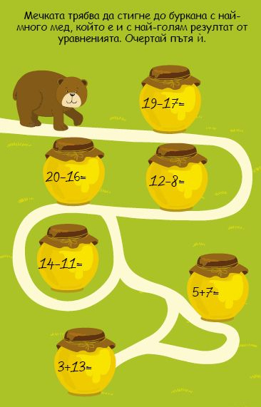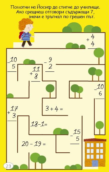 С комплекта активни карти децата трябва да съставят и решават задачи, за да намират път през различни лабиринти. Играейки, те упражняват знанията и уменията си по математика, развиват концентрацията и логиката си. Задачите са подходящи за деца, завършили 1-ви клас, и включват събиране и изваждане от 1 до 20, както и с кръгли числа до 100.