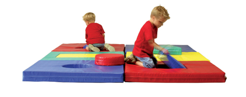 Комплект от 11 меки модула, с които може да се направи детска къщичка за игра. В самите модули са изрязани различни геометрични форми, с които децата могат да правят прозорци, врати и т.н.