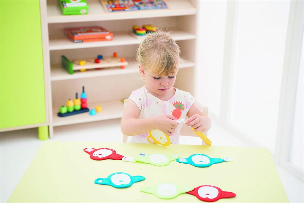 Комплектът „Меки пингвинчета за закопчаване“ включва 16 цветни текстилни фигурки, всяка с различен вид закопчалка – копче, велкро, щипка и закопчалка тип „клик“. Те могат да се свързват помежду си, образувайки вериги, цветови последователности и ритмични модели, като едновременно развиват фината моторика, концентрацията и логическото мислене на децата.
