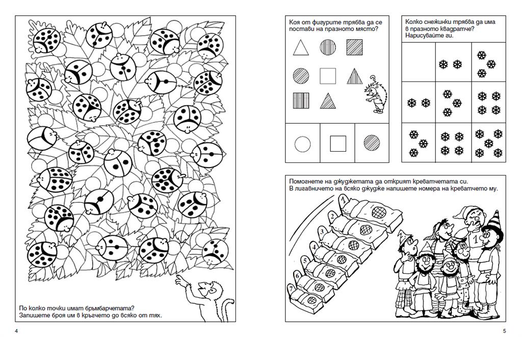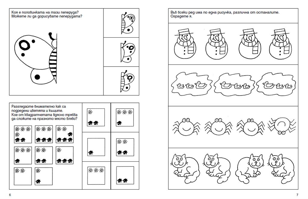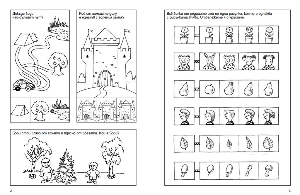 Задачи и тестове, които упражняват способността за задържане на вниманието и по-продължително съсредоточаване, развиват умението да се наблюдава и запаметява, да се разсъждава и съобразява, да се извършват основни логически операции, поставят основа на математическо мислене.