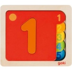 Дървен пъзел, въвеждащ децата в света на цифрите и количествата. Всяка дървена плочка представя цифра от 1 до 5. Тя може да бъде премахната от центъра като елемент от пъзел. Цветните точки в лявата страна на плочките съответстват на количествената стойност на цифрата. Плочките могат да бъдат поставени обратно в кутията на пъзела само в правилната цифрова последователност.