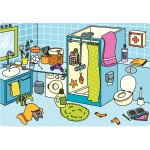 6 ламинирани картонени табла с илюстрации на различни помещения и ситуации