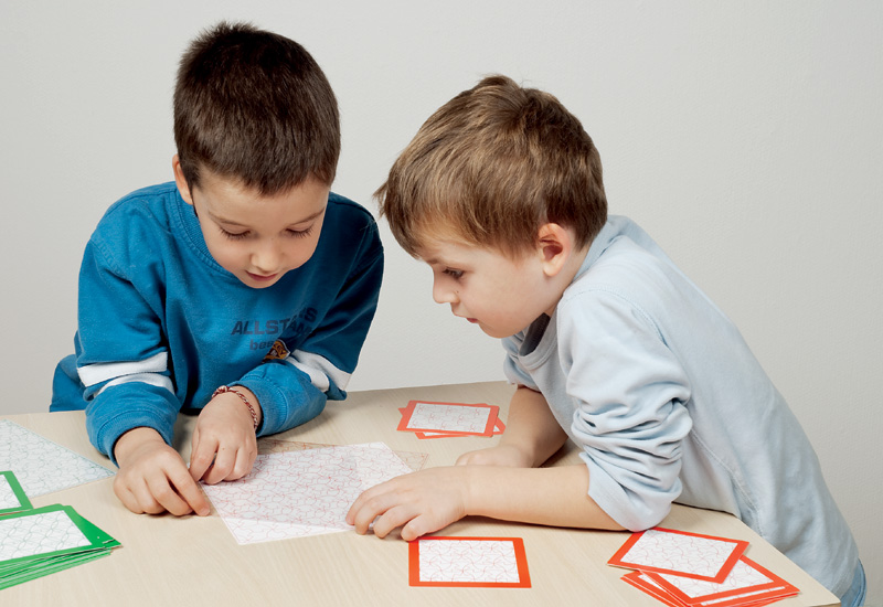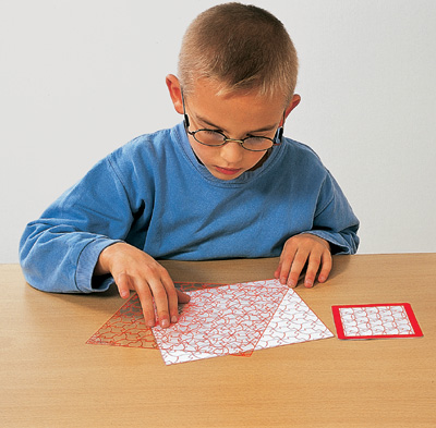 Всички шаблони включват мотив, който е отпечатан върху базовата карта и върху прозрачното фолио. Нови шаблони могат да се направят като местите едно или две от фолиата върху базовата карта. За целта плъзнете фолиото напред, назад, настрани или по часовниковата стрелка или наложите някой от шаблоните върху обратната страна на прозрачното фолио. Насърчавайте играчите да експериментират свободно и да направят свои собствени невероятни открития. Едно откритие бързо води до друго и не след дълго играчите ще бъдат напълно погълнати от търсенето на нови и вълнуващи мотиви. Целта на играта е да се намерят колкото се може повече от мотивите, показани на картите шаблони.