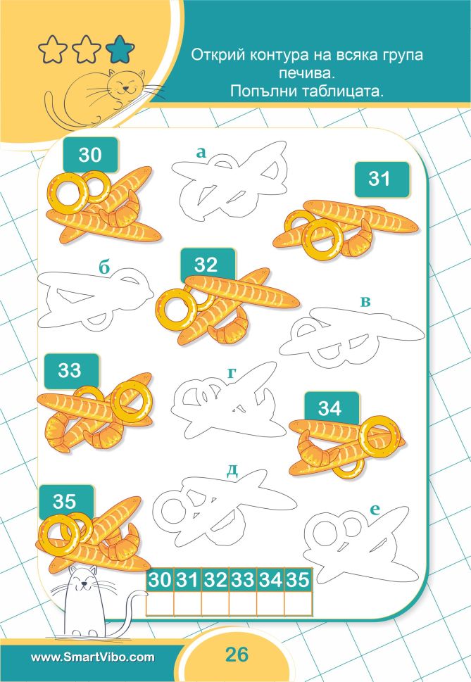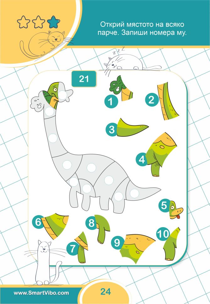 В книжката са вкючени много разнообразни занимания, които предлагат забавен начин за: