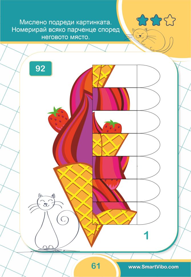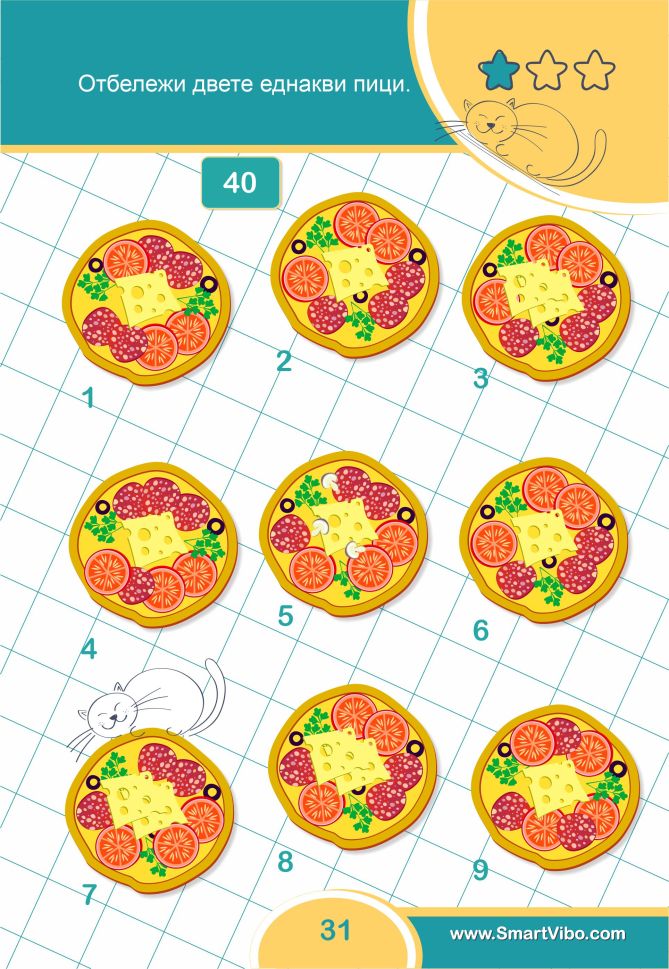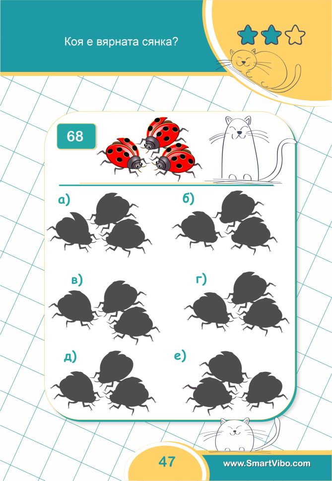 Книжката ще помогне на детето да бъде по – концентрирано и съсредоточено върху детайлите, за решаването на поставените му задачи. Съдържа отговори.