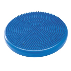 Надуваемият масажен диск за баланс е динамична подложка, която подобрява стабилността, координацията и сетивната осъзнатост. Благодарение на своята конструкция той имитира движението на фитнес топка, като активира мускулите на гърба, таза и краката при всяко движение. Двете му повърхности предлагат различни тактилни усещания – едната с меки шипчета за масаж и сензорна стимулация, а другата с по-гладка текстура за по-меко и стабилно усещане.