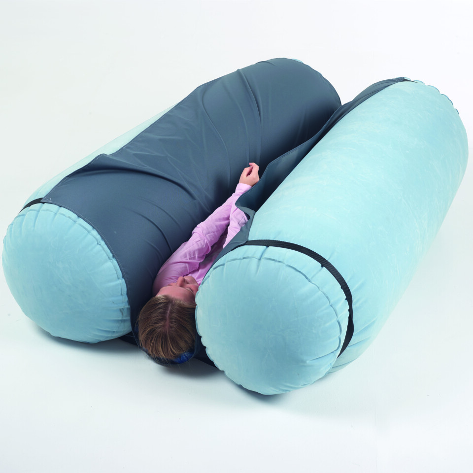 Тези надуваеми цилиндри осигуряват дълбок, равномерен натиск върху тялото, който действа успокояващо, стабилизиращо и подпомага сензорната регулация. Когато детето легне между двата валяка, собственото му тегло създава ефекта на плътна прегръдка, което подобрява телесната осъзнатост и подпомага саморегулацията.