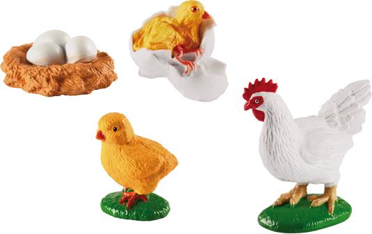 Комплект демонстрационни макети. С тяхна помощ децата могат да проследят етапите от развитието на кокошката. От какво произлиза, с какво се храни, любопитни факти… Най-лесно се учи по време на игра. Чрез разбиране и допир децата научават нови неща за заобикалящите ни живи същества – кой пълзи, скача, лети или пък плува.